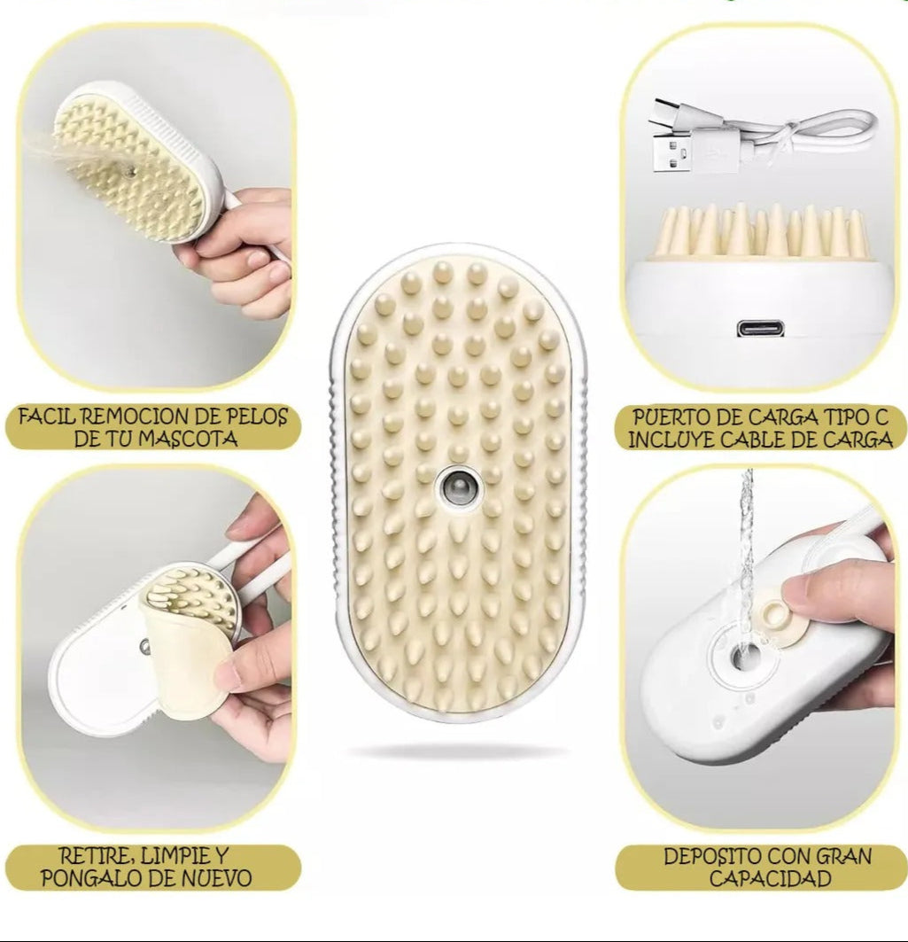 Conoce el cepillo a vapor para mascotas 3 en 1, saludable e innovador con spray que transformara el cuidado, brindando masaje, limpieza y peinado de tu mascota.